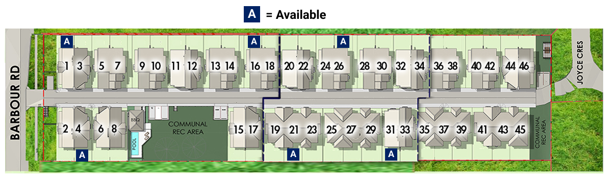 Interactive Floorplans: Click on available townhouses to view, print or download floorplans